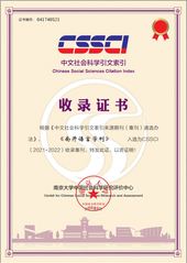CSSCI扩展版来源期刊收录证书